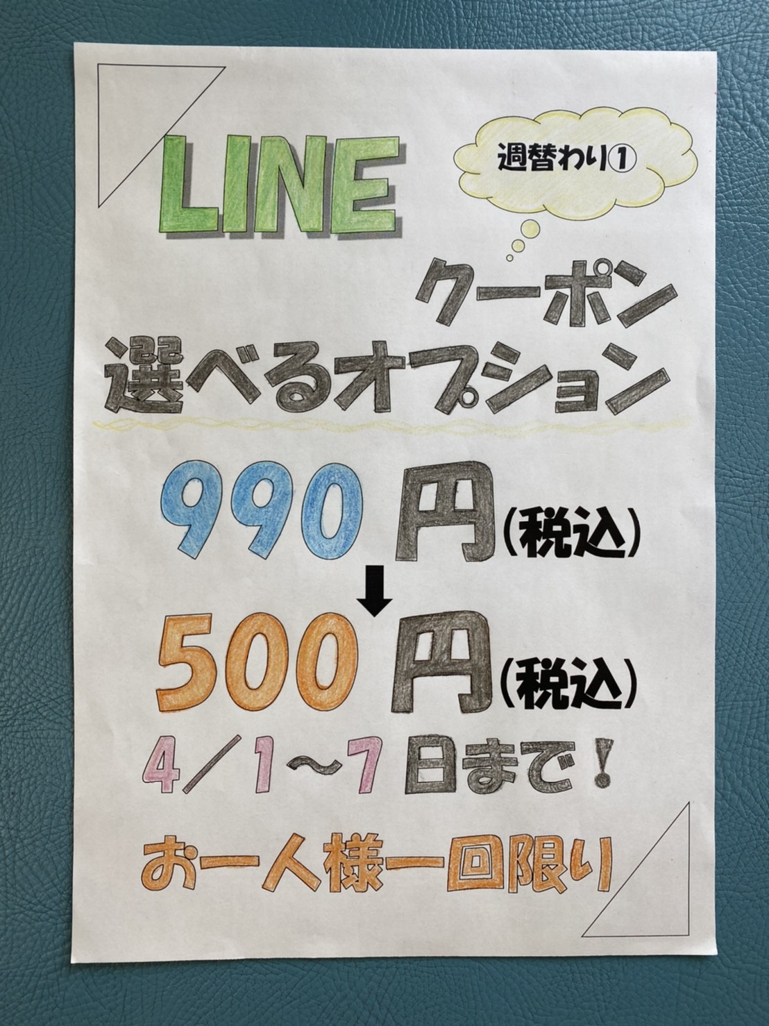週替わり1週目は【選べるオプションメニュー】クーポンになります。