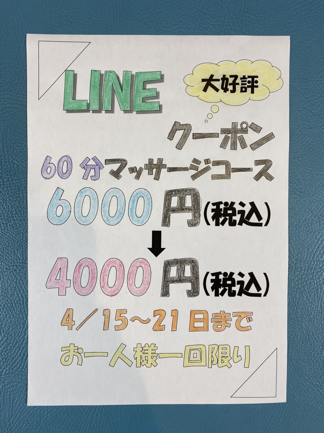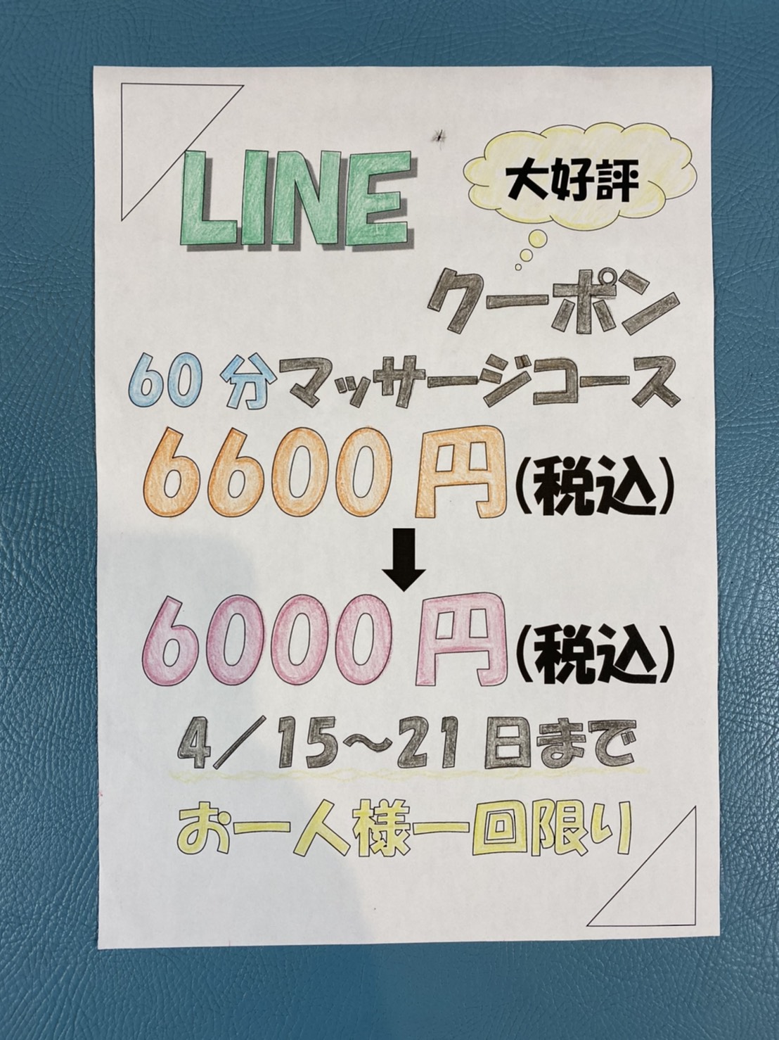 週替わり3週目は【マッサージ60分コース】クーポンになります。