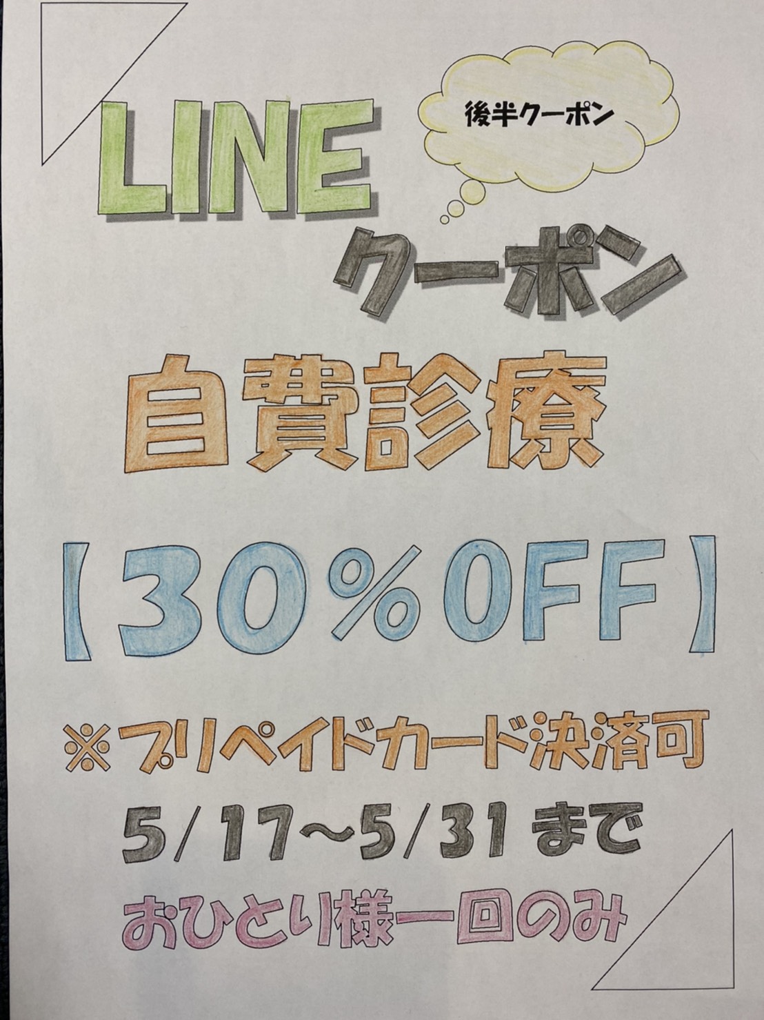 <5月後半クーポン> 【自費診療30%OFF】 5月17日(月)~5月31日(月)限定。