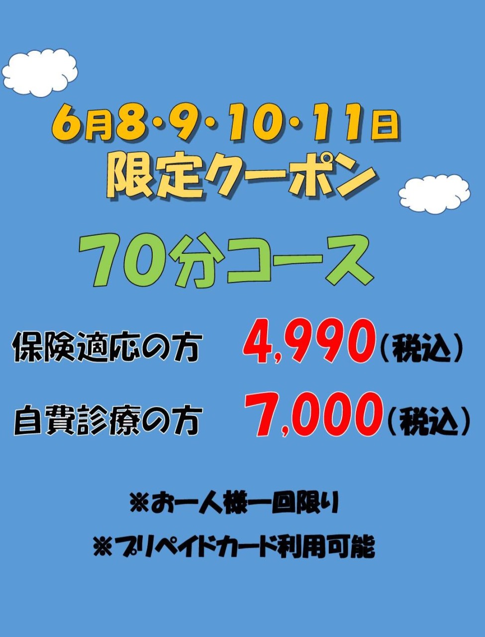 ♬6月8日(火)から11日(金)【平日】限定クーポン♬