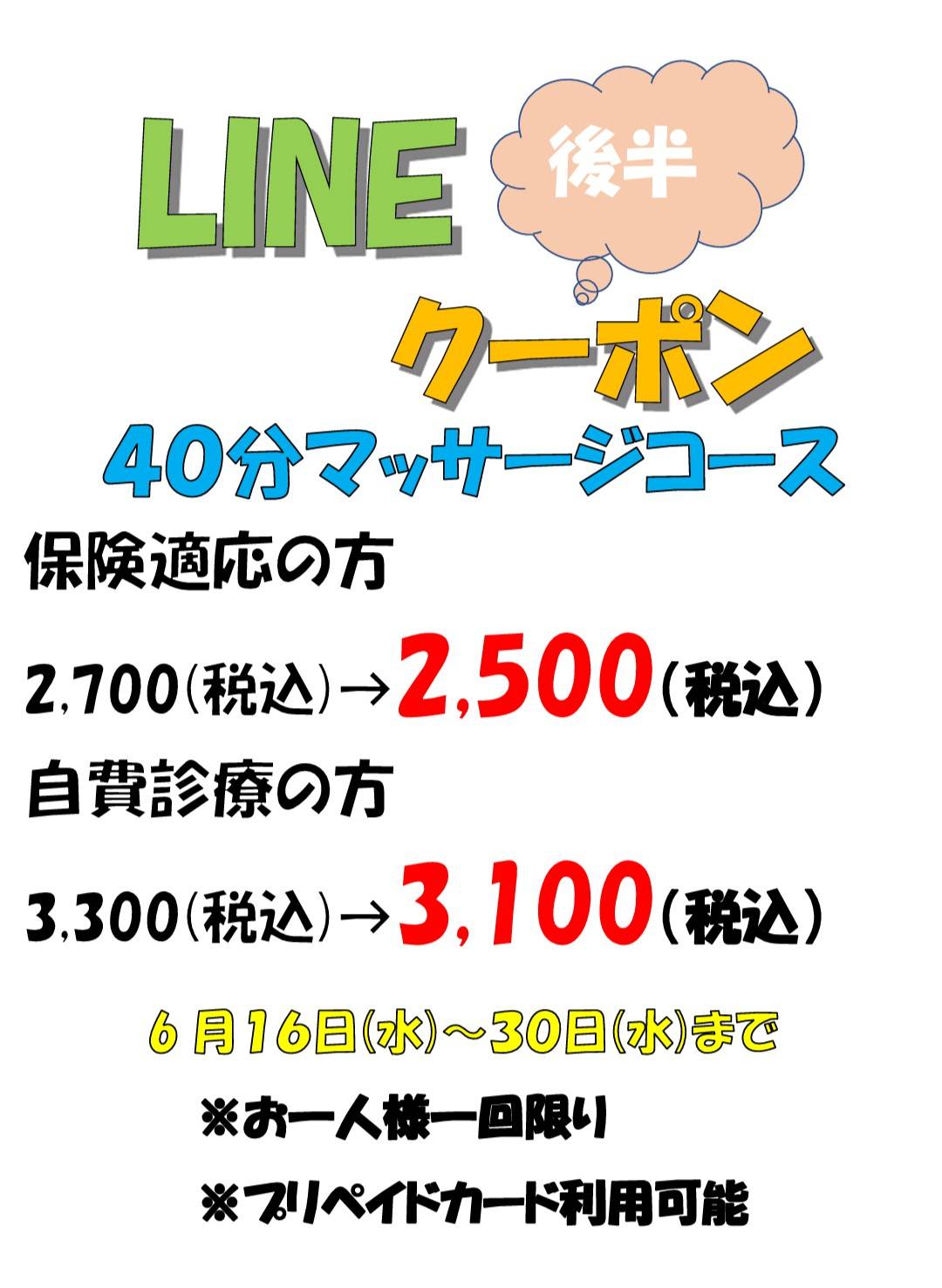 6月後半クーポンは【マッサージ40分コース】クーポンになります。