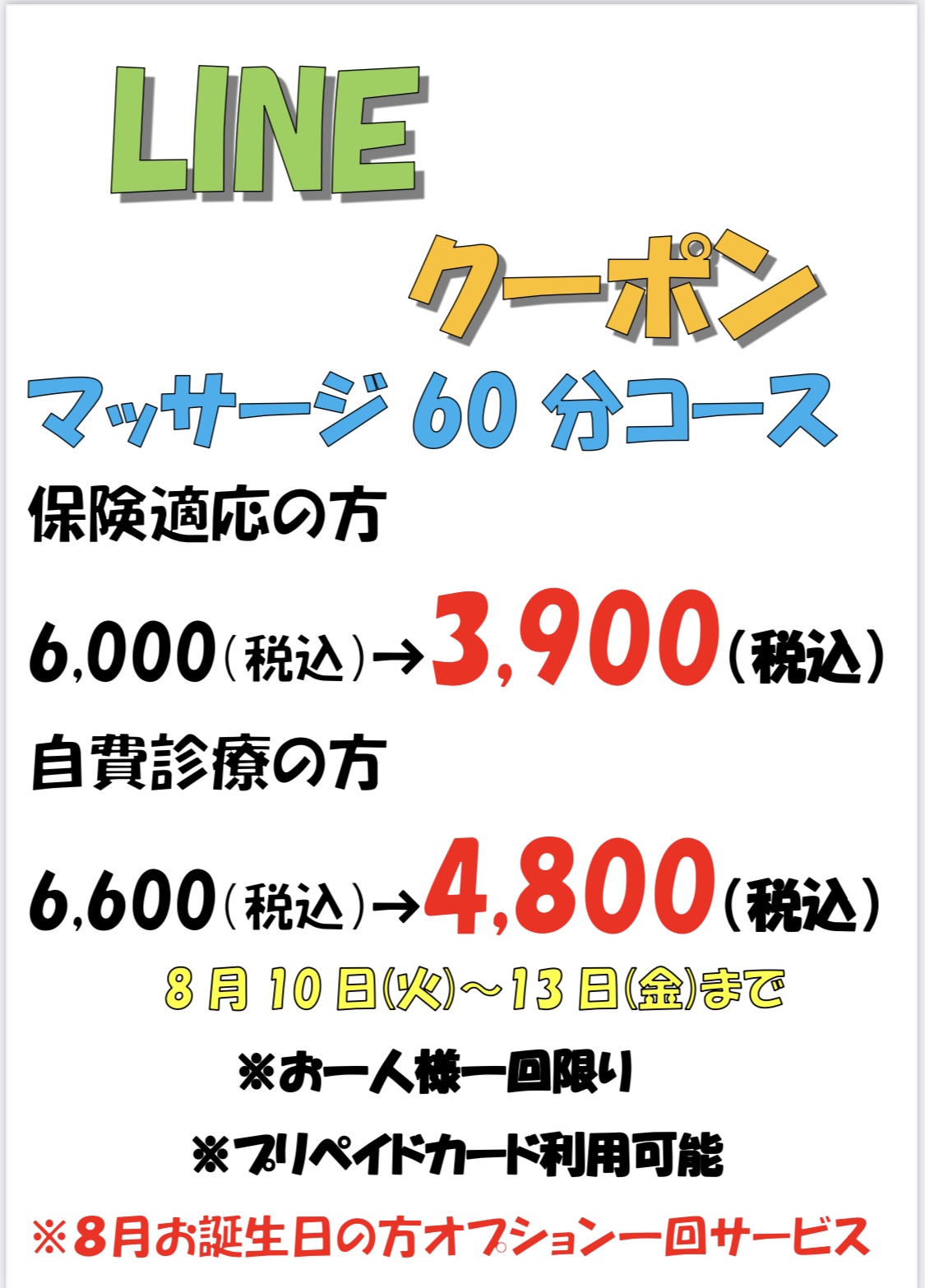 平日限定LINEクーポンは【マッサージ60分コース】クーポンになります。